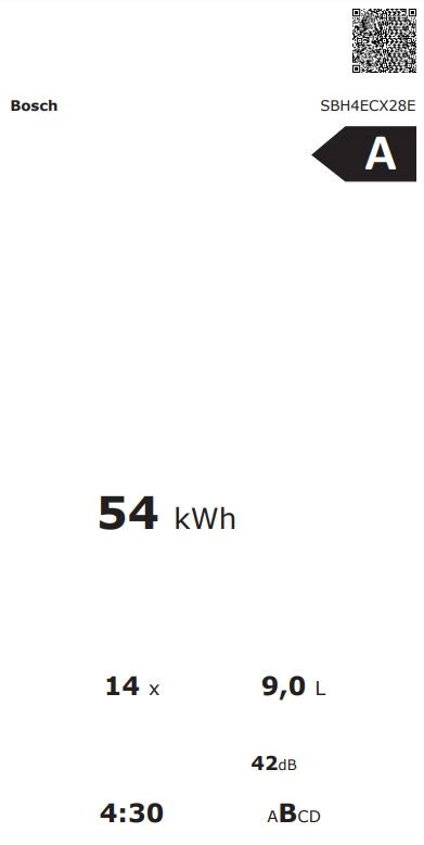 Bosch SBH4ECX28E MOSOGATÓGÉP BEÉPÍTHETŐ 14 TERÍTÉK