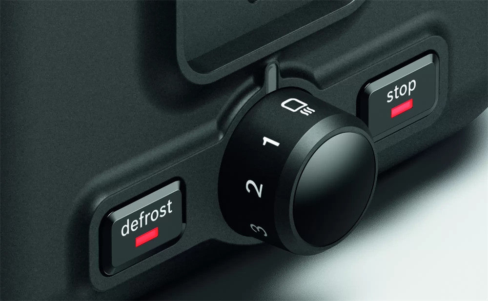 - Fokozatmentes pirítási erősség-szabályozó gomb, integrált melegítőráccsal
