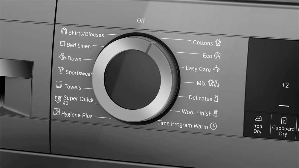 - Kiegészítő funkciók: Pamut, Lepedők, ing/blúz, Pamut Eco, Tolltöltetű ruhák, Kényes anyagok, Törölközők, Higiénia Plusz, Vegyes, szuper 40 perc, Sportruházat, Szintetikus, Gyapjú szárítás befejezése, Időzített program meleg