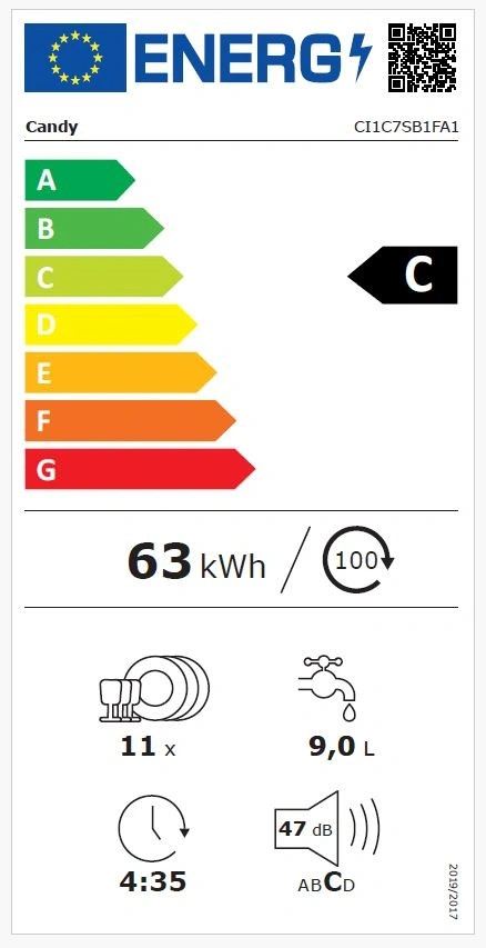 Candy CI1C7SB1FA1 MOSOGATÓGÉP BEÉPÍTHETŐ 11 TERÍTÉK