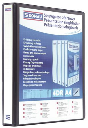 DONAU Gyűrűs könyv, panorámás, 4 gyűrű, D alakú, 20 mm, A4, PP, DONAU, fekete