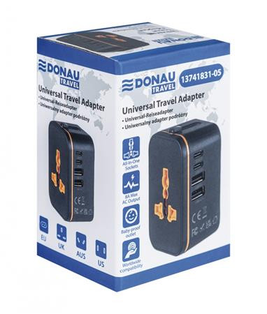 DONAU Utazóadapter, univerzális, DONAU "Travel 205", fekete