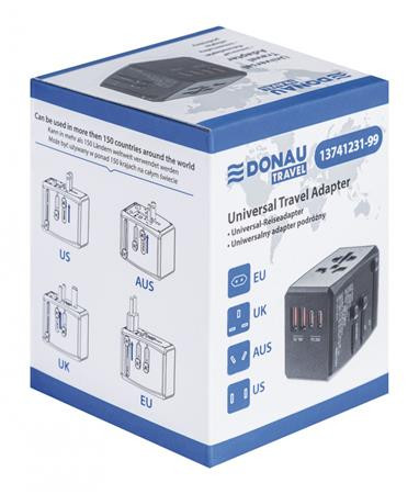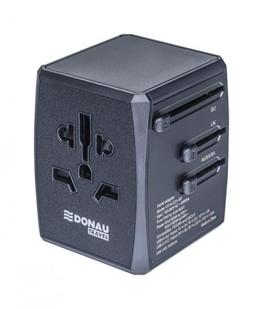 DONAU Utazóadapter, univerzális, gyorstöltő, DONAU "Travel 904", fekete