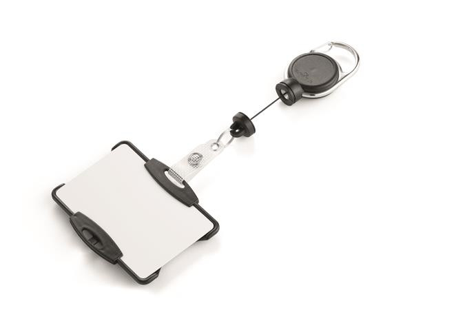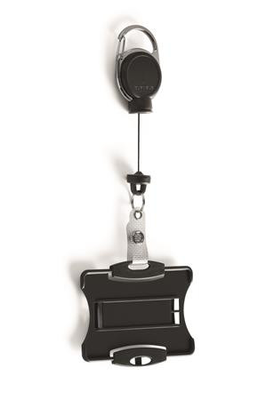 DURABLE Azonosítókártya-tartó, kihúzható, karabineres, DURABLE "Extra strong", kártyatartóval, fekete
