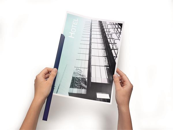 Iratsín, a dokumentumok lyukasztás nélküli lefűzésére, lekerekített sarkokkal, melyek megkönnyítik a papír behelyezését