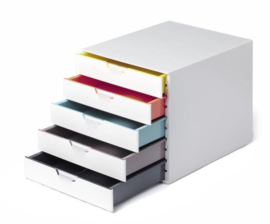 Elegáns irattároló 5 színes fiókkal, melyek segítik a rendszerezést és a tájékozódást.