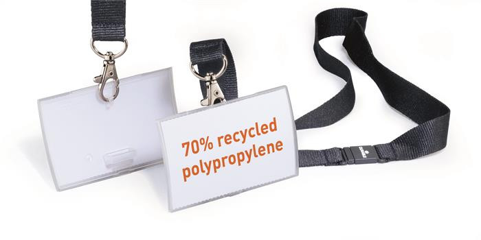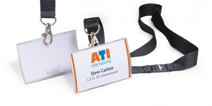 DURABLE Névkitűző, nyakbaakasztóval, 54x90 mm, DURABLE "CLICK FOLD", áttetsző
