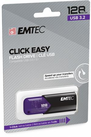 EMTEC Pendrive, 128GB, USB 3.2, EMTEC "B110 Click Easy", fekete-lila