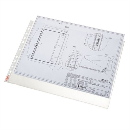 Matt, átlátszó felületű lefűzhető tasakok, amelyek ideálisak nagyobb formátumú rajzok, tervek, poszterek tárolására.