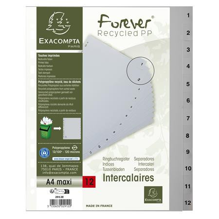 EXACOMPTA Regiszter, műanyag, A4+, 1-12, EXACOMPTA, szürke