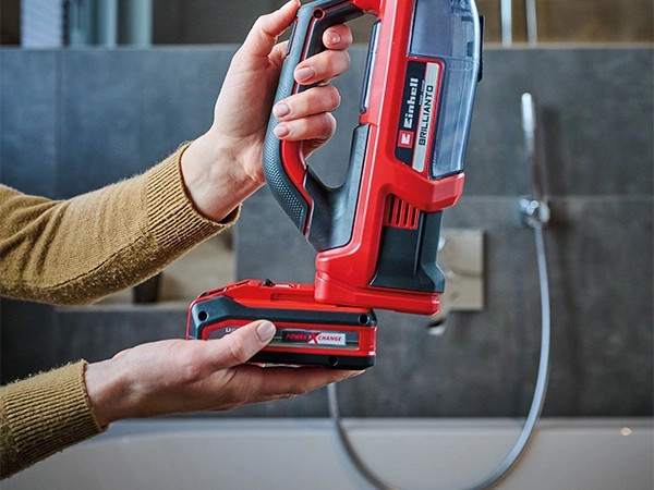 Csíkmentes ablakok pillanatok alatt – ez egyáltalán nem működik az Einhell akkus BRILLIANTO ablaktisztítóval. A Power X-Change család részeként a kábel nélküli ablaktisztító minden akkumulátorral és töltővel kombinálható. Vezeték nélküli ablaktisztítás megszakítás nélkül: Ezt a Power X-Change cserélhető akkumulátorrendszer és a nagy sebességű töltési technológia teszi lehetővé. Ha a használt akkumulátor lemerült, könnyen kicserélhető egy telire – így az üzemidőnek nincs korlátja. A BRILLIANTO akkus ablaktisztítóhoz 300 ml-es szórófejes flakon jár. A mellékelt mikroszálas kendő ezekhez van rögzítve az üvegfelületek könnyű tisztításához. A víz maradványait ezután az ablaktisztító 28 cm-es szívófeje segítségével összegyűjti. A fúvóka és az egyrészes szilikon lehúzó ajak tökéletes kölcsönhatása csíkmentes eredményt biztosít – függetlenül attól, hogy az üvegfelületeket vízszintes, függőleges vagy átlós irányban tisztítják. Nem csak ablaktisztításhoz, hanem csempék, zuhanyzók, üvegasztalok, autó ablakok és ablakok, nagy ablakok előlapok stb. tisztításához is. Akár 100 ml folyadékot is ki lehet tölteni. Ürítéshez és tisztításhoz a tartály teljesen kivehető a készülékből. Könnyű és kompakt kialakításának és speciális softgrip felületeinek köszönhetően az ablaktisztító kényelmesen ül a kézben, csúszás nélkül. A be-/kikapcsoló folyamatos működési funkcióval van ellátva az időigényes tisztítási munkák érdekében. Az akkus ablaktisztító egyszerűen és helytakarékosan a mellékelt fali konzolban tárolható. A BRILLIANTO akkumulátor és töltő nélkül kerül szállításra.