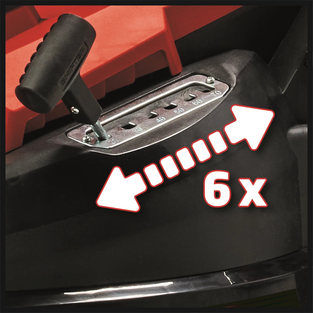 A nagy teljesítményű és fordulékony GC-EM 1800/43 elektromos fűnyíró nélkülözhetetlen segítőtárs a kert(sz)építési munkák során. Az 1800 W teljesítményű és 3300 fordulat/perc üresjárati fordulatszámú erős motor tiszta és szép vágásképet garantál még akkor is, ha magasabb fűben dolgozik. A készülékház hosszú élettartamot biztosító, erős műanyagból készült. A fűnyíró rendkívül pontos és tiszta végeredményt szavatol, ha szegélyek mentén dolgozik. A 43 cm vágásszélességű fűnyírót legfeljebb 800 m² nagyságú gyepfelületek ápolására ajánljuk. Az ergonomikus munkavégzés érdekében a nyél a felhasználó egyéni adottságaihoz állítható. A hatfokozatú axiális vágásmagasság-állítás segítségével könnyedén és gyorsan beállíthatja a 20 – 65 mm közötti munkamagasságot. A nagy futófelületű speciális hátsó kerekek óvják a gyepet. A nagy kerékátmérő lehetővé teszi, hogy a legkülönbözőbb terepeken is használhassa a készüléket. A telítettségjelzővel felszerelt 50 literes gyűjtőzsák biztosítja, hogy megszakítások nélkül, akár huzamosabb ideig is dolgozhasson a készülékkel. Az integrált kábelrögzítő óvja a kábelt a sérülésektől, és segít, hogy fűnyírás közben is rendezett legyen a vezeték. A gyorsrögzítővel ellátott összecsukható nyélnek és a készülékházra tervezett fogantyúnak köszönhetően a fűnyíró mozgatása és szállítása rendkívül egyszerű.