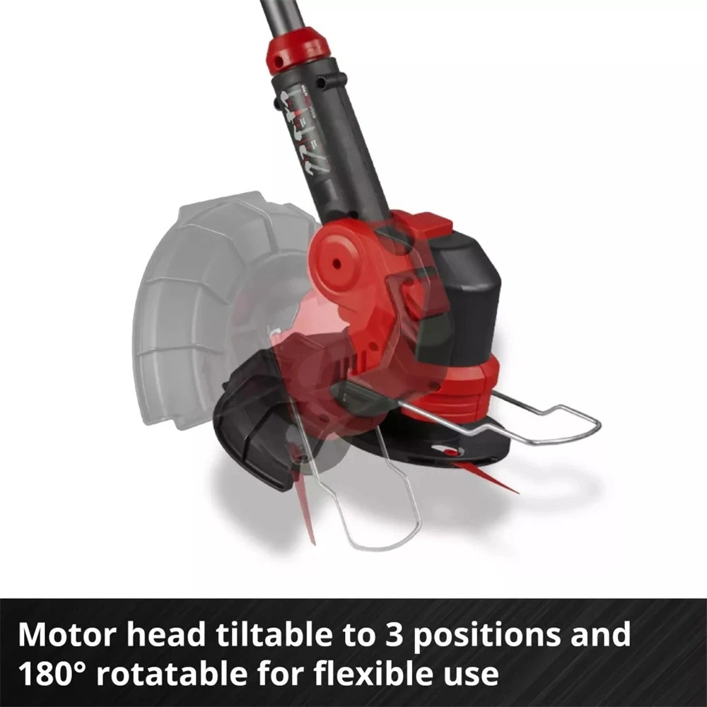- 180°-ban forgatható motorfej: Függőleges felületekhez/gyepszegélyekhez