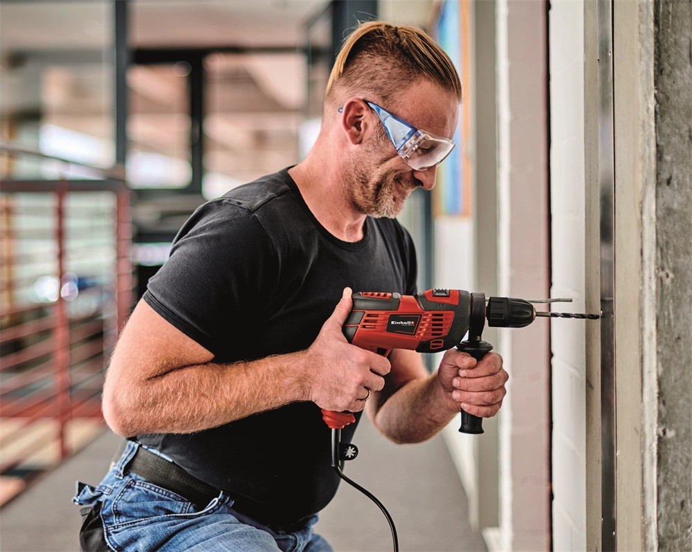 Az Einhell TC-ID 720/1 E Kit ütvefúró nem hiányozhat egyetlen ezermester szerszámoskamrájából sem: segítségével könnyedén elvégezhet bármilyen fúrási és ütvefúrási munkát! A készülék elég erős ahhoz, hogy lépésről-lépésre, ütésről-ütésre áthatoljon a megmunkálandó anyagon. A fordulatszám-szabályozó elektronika, valamint a funkcióváltó kapcsoló (fúrás/ütvefúrás) segítségével mindig az elvégzendő munka és a megmunkálandó anyag sajátosságaihoz igazíthatja a fordulatszámot. Az állítható forgásirány (jobb/bal) megkönnyíti a munkát, így nélkülözhetetlen segítség fúráshoz és kemény anyagban történő csavarozáshoz. A rögzíthető nyomógomb kényelmes munkavégzést, a nagyméretű Softgrip borítású felületek pedig kényelmes munkavégzést tesznek lehetővé. A meghúzható bordázott pótfogantyú extra tartást biztosít. A munkához használt szerszámot egyetlen szempillantás alatt befogathatja a robusztus, 13 mm-es gyorsbefogó tokmányba (méret: 1,5 - 13 milliméter). A TC-ID 720/1 E 43 mm-es befogónyakkal felszerelt fúrógépállványra is rögzíthető. A keményfémből készült furatmélység-ütköző fokozatmentesen állítható. Fúrásteljesítmény-értékek: 30 milliméter (fa), 10 milliméter (fém), 13 milliméter (beton).