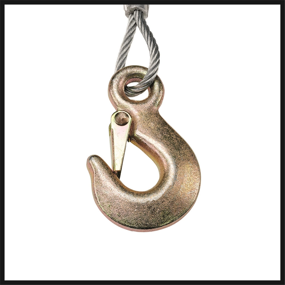 - A biztonsági karabiner megakadályozza, hogy a rögzített teher lecsúszhasson a horogról