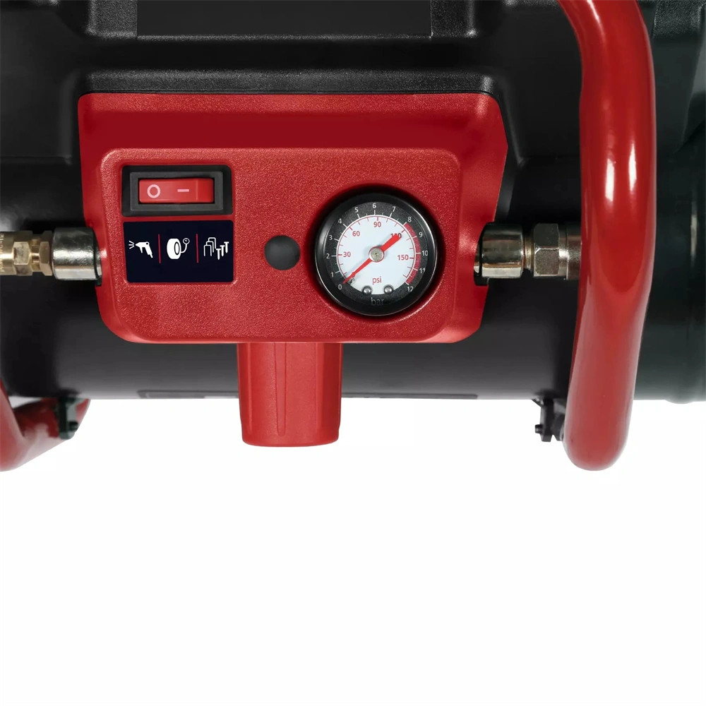 Mindegy, hogy a műhelyben vagy a garázsban van szüksége segítségre, az Einhell TE-AC 36/150 Li OF-Solo akkumulátoros kompresszorával soha nem fogy ki a szuszból! A 6 literes tartállyal ellátott mobil és nagy teljesítményű kompresszor max. 8 bar nyomáson 150 l/perc szívóteljesítmény elérésére képes. Twin-Pack technológiával, amely 2x 18 V Power X-Change akku egyidejű behelyezését teszi lehetővé. A zárható akkumulátortartó-fedél mindkét akkut óvja a portól és a fröccsenő víztől. Olaj- és karbantartásmentes pumpával, amely minimálisra csökkenti a szervizelési igényt. A szabályozott sűrített levegővel végzett munkák kivitelezéséhez a készüléket nyomásmérővel és gyorscsatlakozó aljzattal látták el. A nyomáscsökkentő segítségével kézzel állíthatja be a kívánt üzemi nyomást. A készülék tervezésénél a mobilitás volt az egyik legfontosabb szempont: az ergonomikus és integrált hordozófogantyúval a 9,7 kg-os kompresszor rendkívül egyszerűen mozgatható. A gumírozott lábak maximális stabilitást és csökkentett rezgésszintű, csendesebb munkavégzést biztosítanak. A vízleeresztő csapon keresztül kényelmesen leeresztheti a kondenzvizet. A kompresszoron található egy praktikus tárolórekesz, amelyben rendezetten tárolhatja a tartozékokat. Akku és töltő nélkül; ezeket külön vásárolhatja meg.