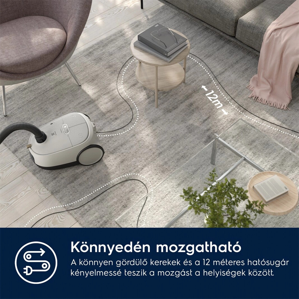 Teljesítményszabályozó: Olyan teljesítménnyel használhatja porszívóját, ami a legjobban megfelel Önnek. Akár a minimumon is, hogy energiát spóroljon.