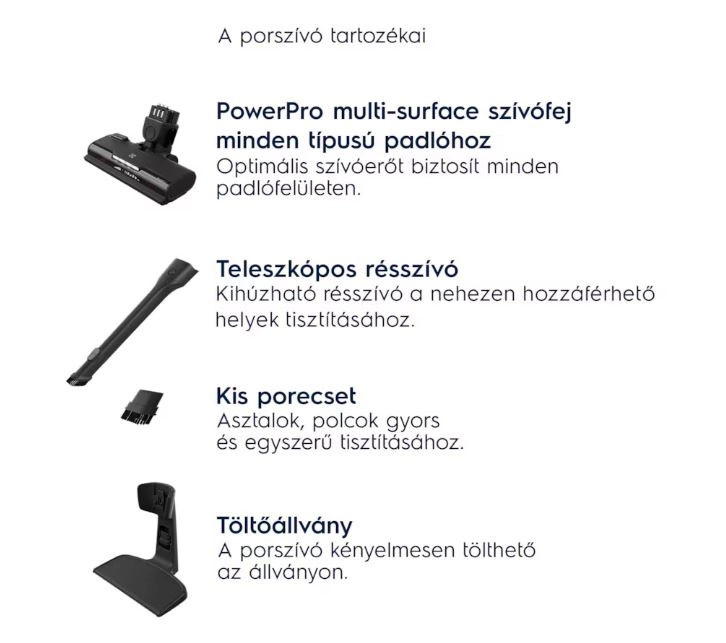 - Szívófej: PowerPro minden típusú padlóhoz