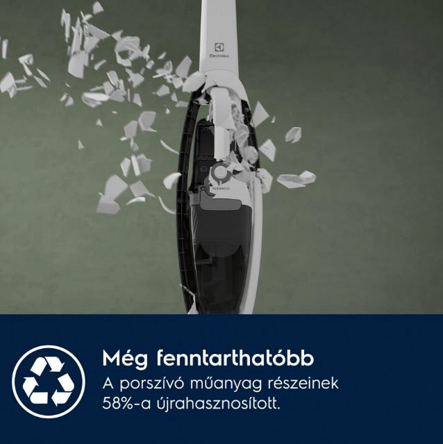 *Az újrahasznosított műanyag-tartalom %-os értéke 64-74% az Electrolux 500 vezeték nélküli porszívó modelleknél.