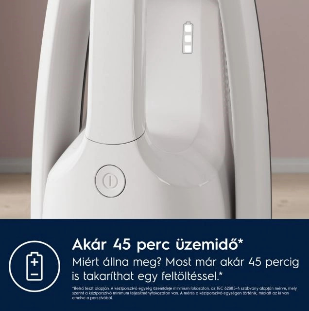 Akár 45 perc folyamatos üzemidő** a kényelmes takarítás érdekében
