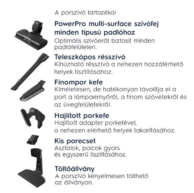 - DustSpotter™ LED-fények: A szívófejen elhelyezett DustSpotter™ LED-fénnyel minden apró morzsát felfedezhet.