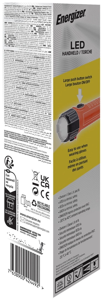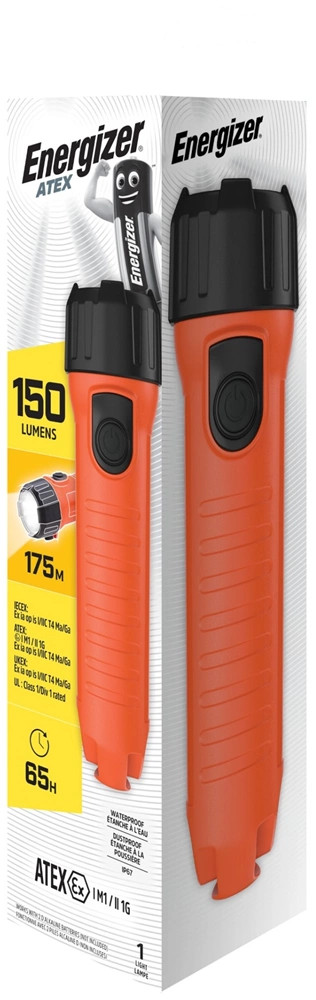 Az Energizer ATEX Elemlámpa strapabíró kialakítással rendelkezik, amely ellenáll a víznek, a porral szemben és a durva kezelésnek is. Ezáltal megbízhatóan működik a nehéz körülmények között is, például ipari helyszíneken, bányákban vagy építkezéseken.
