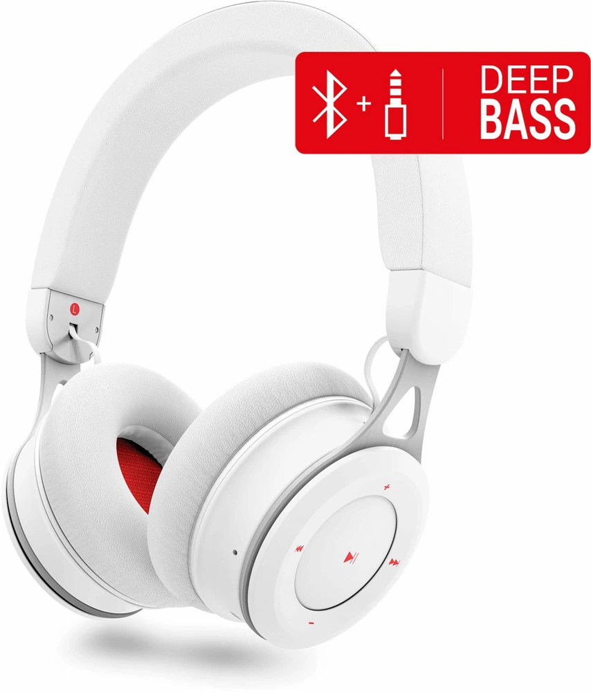 Bluetooth fejhallgató mély basszussal, mikrofonnal és lejátszásvezérlő gombokkal.