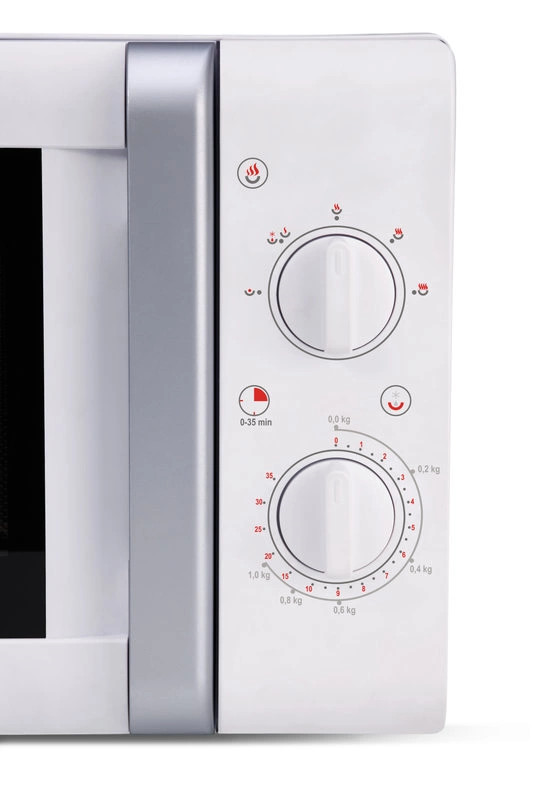 Egyszerű mikrohullámú sütő a főzési idő és mikrohullámú teljesítmény mechanikus vezérlésével