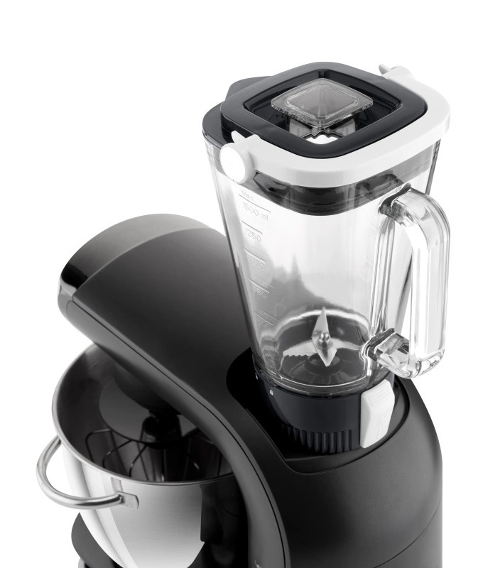 Mindezt egy nagy, 5,5 literes rozsdamentes acél tállal kapja, amelyben akár 2,5 kg tésztát is feldolgozhat. Az átlátszó burkolatnak köszönhetően a robot környezete is tiszta marad.