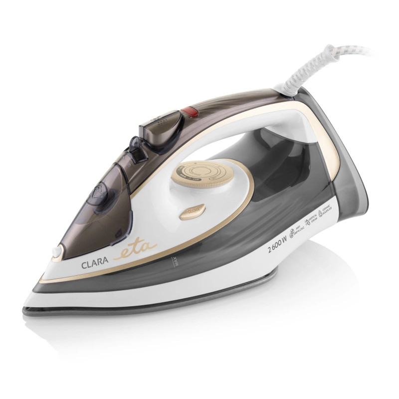 Az ETA Clara vasaló kerámia felülete számos előnnyel rendelkezik, amelyek a lehető legélvezetesebbé teszik a vasalást. Például optimálisan elosztja a gőzt a vasalófelület teljes felületén, nagyon gyorsan felmelegszik és kiváló siklású. nagy a felület vezetőképessége, van elektromos megtakarítás is!