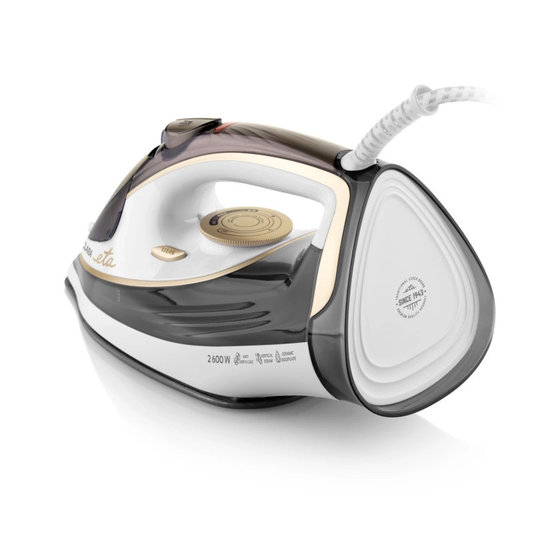 A gőzölős vasalóval ETA Clara 1274 90000 többé nem kell korlátoznia magát a vasalás során. A magas, 2600 W-os fogyasztásnak köszönhetően a vasaló pillanatok alatt felmelegszik. A gőzlökés eléri a 120 g/mig terjedő teljesítményt, aminek köszönhetően a nagyon hajlékony ruhaneműt is elbírja. A hosszú 2,5 m-es tápkábel a vasalást is megkönnyíti.