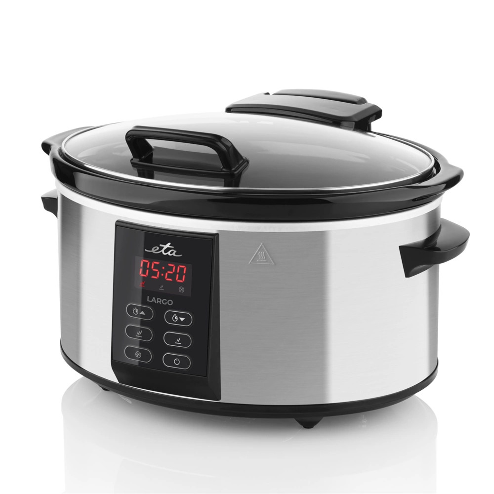 Az ETA Largo lassú főzőedény 6 literes kapacitása elegendő lehet nagycsaládi ebédekhez. A kivehető kerámia edény bőséges helyet kínál kedvenc ételeinek, és egyszerűsíti a tálalást, valamint a hűtőszekrényben történő tárolást.