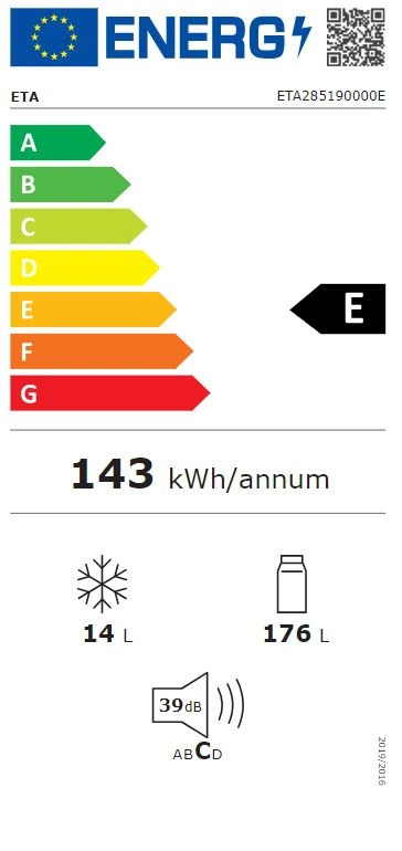 Eta 285190000E HŰTŐ EGYAJTÓS FAGYASZTÓREKESSZEL 190 L