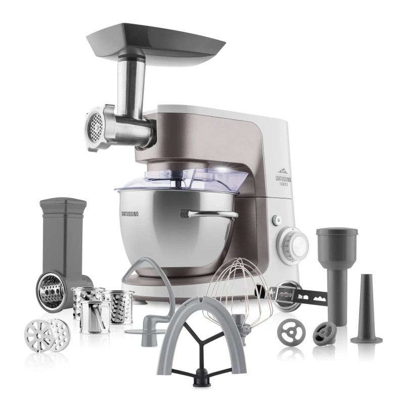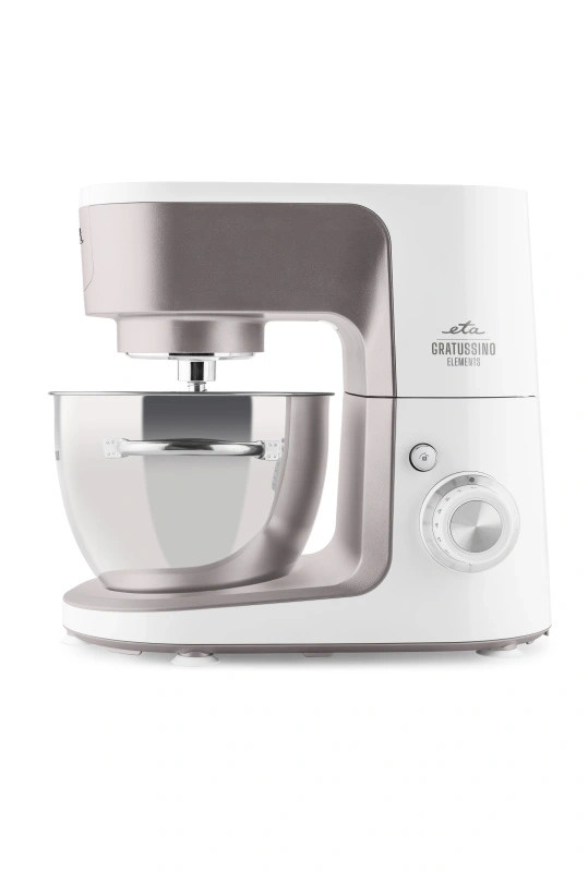 Bár az ETA Gratussino III Elements konyhai robotgép valamivel kisebb, mint nagyobb testvérei, mégsem lomha. Az erőteljes, 1200 W-os motor csendes működéssel és fém fogaskerekekkel hosszú élettartamot és stabil teljesítményt biztosít. A bolygóműves keverőrendszer egyenletesen dolgozza fel az összes hozzávalót a 4,5 literes rozsdamentes acél tálban , amely praktikus fogantyúkkal és átlátszó fedéllel is felszerelt .