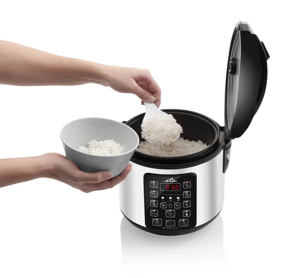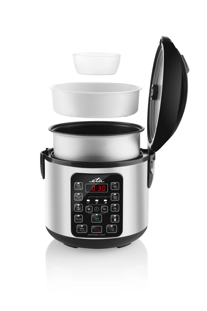 - 9 automatikus program (Rizs fehér, Rizs barna, Fedél nélküli főzés beállítása, Quinoa, Hőmérséklet tartási, Gőzben való főzés beállítása, Lassú főzés beállítása, Porridge, Joghurt)