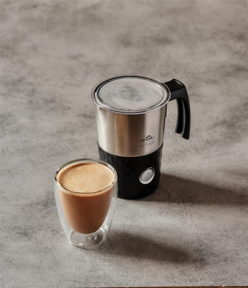 Az ETA Artteo 4189 9000 tejhabosítót nem csak a kávé szerelmesei fogják imádni. A három üzemmódnak köszönhetően választhat a meleg/hideg tejhab, vagy a tejmelegítő funkciók közül, amivel tökéletes kakaót is készíthet. A fekete és a rozsdamentes acél dizájnjával konyhája fényűző kiegészítője lehet.
