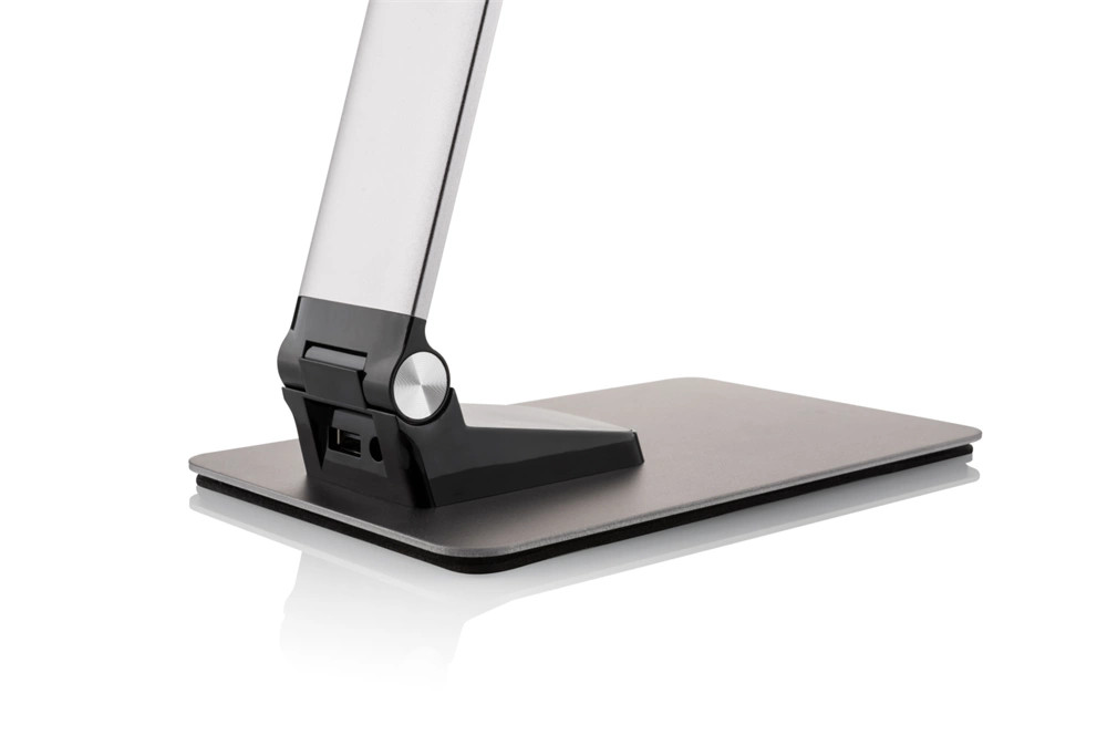 Ezenkívül a LED-es lámpa USB tápcsatlakozóval is rendelkezik mobiltelefonok és táblagépek töltéséhez, valamint csúszásmentes szőnyeggel , aminek köszönhetően nem csúszik az asztalon.