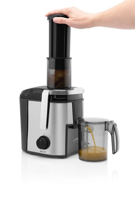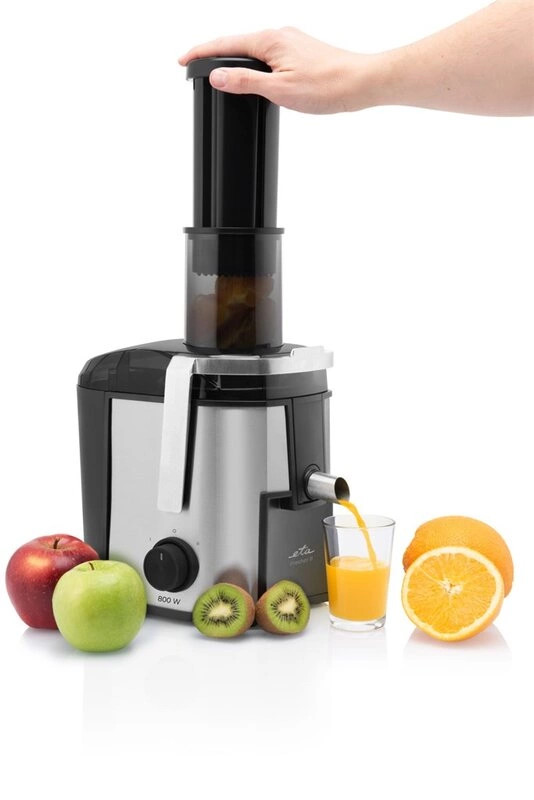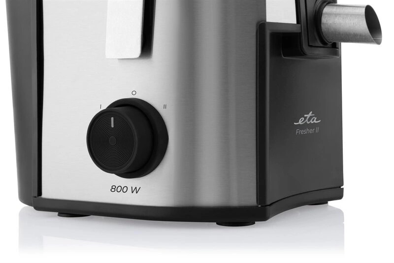 A 800 W-os motor a lágy gyümölcsökkel és keményebb zöldségekkel is megbirkózik. Az igazán nagy töltőnyílásnak (85 mm) köszönhetően akár nagyobb darab nyersanyagot is beletehet a facsaróba. Az ETA Fresher II 100%-ban megőrzi a gyümölcsökben és zöldségekben lévő vitaminokat, és mindezt a frissességet egy 0,8 literes gyümölcslé-üvegbe préseli Önnek.