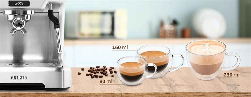 A csésze mérete pont megfelelő a tökéletes eszpresszóhoz. A 80 ml-es űrtartalommal fogyaszthatja az eszpresszót önmagában, tejjel vagy akár duplán is.