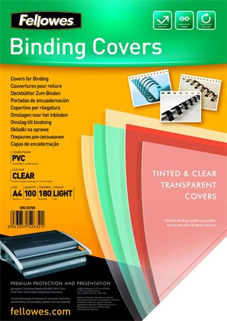 FELLOWES Előlap, A4, 180 mikron, FELLOWES, víztiszta