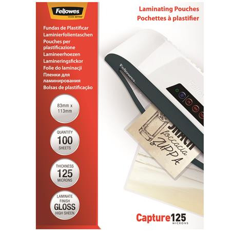 FELLOWES Meleglamináló fólia, 125 mikron, 83x113 mm, fényes, 100 db, FELLOWES