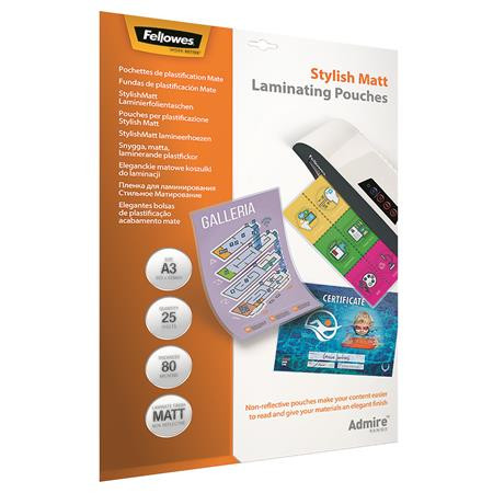 FELLOWES Meleglamináló fólia, 80 mikron, A3, matt, 25 db, FELLOWES, "Admire Stylish"