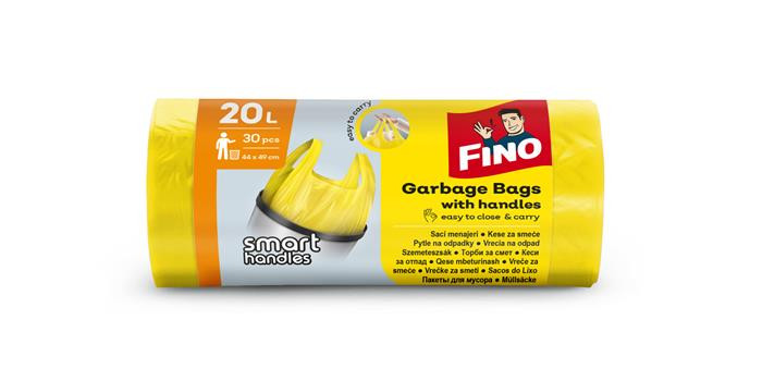 FINO Szemeteszsák, köthető füles, 20 l, 30 db, 44x49 cm, 7 µ, FINO "Smart handles", sárga