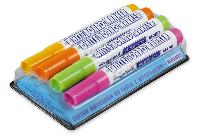 GRANIT Táblamarker készlet, 2-3 mm, kúpos, mágneses tolltartóval, GRANIT "M460", 4 különböző szín