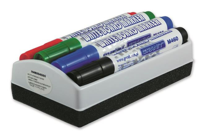 GRANIT Táblamarker készlet, 2-3 mm, kúpos, tolltartóval, GRANIT "M460", 4 különböző szín + táblatörlő