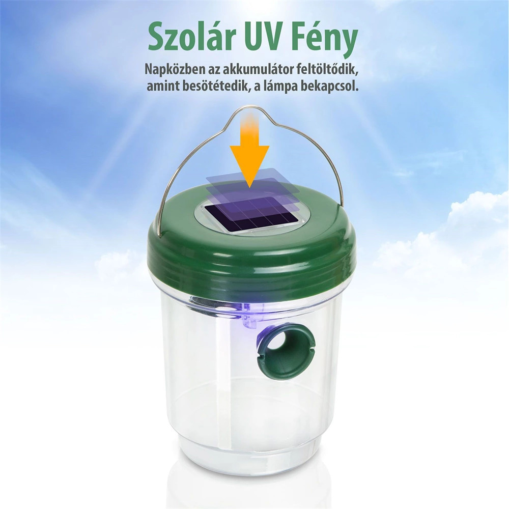 - Az integrált fény oda csalogatja a rovarokat, melyek nem tudnak kijönni az edényből
