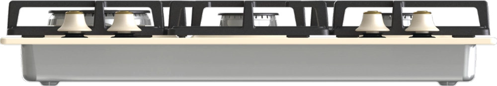 Classico design, 4 gázégő, 1 wok, egykezes szikragyújtás, öntöttvas edénytartó rács és égőfejek, kezelőszervek elöl, elefántcsont szín, égésbiztosító