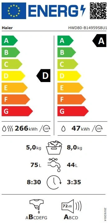 Gyártói Cikkszám HWD80B14959S8U1SGarancia 0Gyártó HaierVTSZ 84501190Cikkszám xsy_HAIHWD80B14959S8U1STömeg 77 kg/db