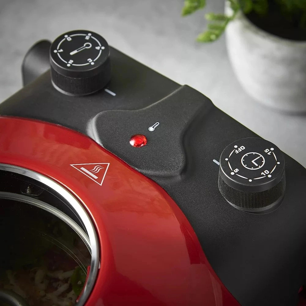 Ellenőrizheti a sütés folyamatát a praktikus betekintő ablakon keresztül. Nem kell megszakítania a sütési folyamatot a fedél kinyitásával, egyszerűen csak nézzen át az üvegablakon, hogy ellenőrizze az ételt.
