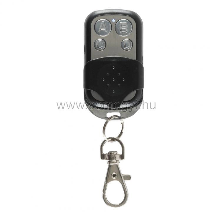 - Egyéb funkciók: fix kódos, 433 MHz rendszerekhez / egyidejűleg 4 funkcióhoz vagy eszközhöz alkalmazható: kapu, garázs, távirányítós aljzat, háztartási készülék, riasztó… / fém előlap és keret kulcstartóval hatótávolság kb. 30 m